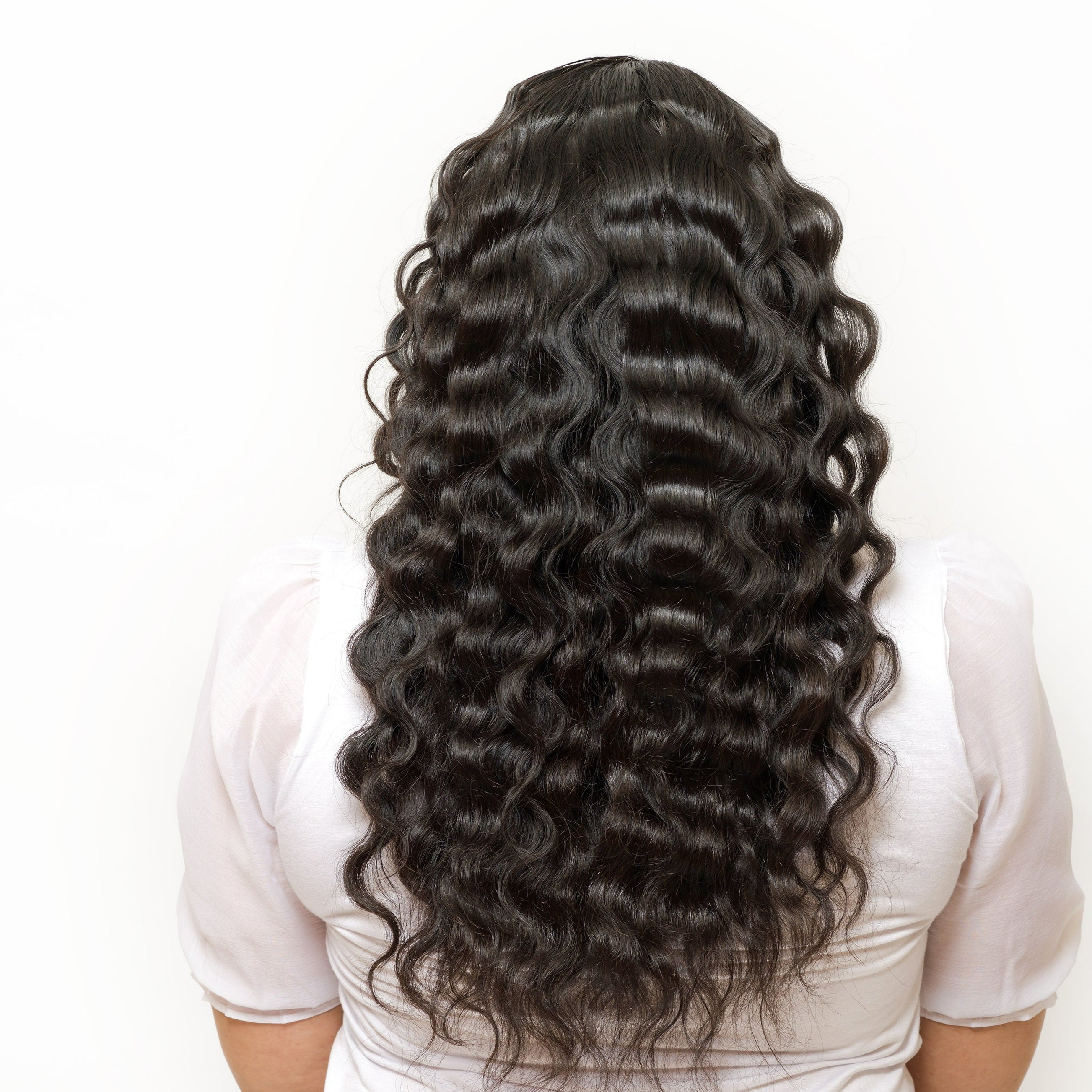 100% Authentic, Unprocessed, Virgin Indian Human Hair Extension. No Chemicals. No Dyes. No Silicones. No Scalp or Skin Irritation. No Toxic Smell. No Matting. No Tangling.